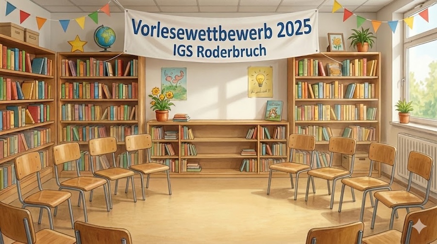 Der Dreiecksraum der Bücherei verwandelte sich am 4.12.2025 in eine kleine Bühne voller Spannung, Lampenfieber und literarischer Abenteuer. Der Schulentscheid im Vorlesen des 6. Jahrgangs der IGS Roderbruch stand an, ein Höhepunkt, auf den viele Kinder schon seit Wochen hingefiebert hatten.